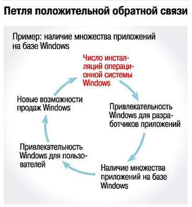 Рис. 4.3. Петля положительной обратной связи на примере Windows С каждым витком самоускоряющегося роста «фирма-лев» все дальше отрывается от конкурентов. Динамичные «львы» наиболее агрессивны в конкуренции в верхнем эшелоне «пирамиды корпораций». Потенциал роста того сегмента рынка, в котором динамично развивался «лев», рано или поздно иссякает. Активная эволюция виолента заканчивается, и он переходит в позицию «могучего слона», когда фирма-виолент утрачивает динамизм, но взамен обретает повышенную стабильность. В этом состоянии она может существовать ряд десятилетий. Устойчивость обеспечивается в основном тремя факторами: · большими размерами; · диверсификацией; · наличием широкой международной сети филиалов. «Могучему слону» в условиях стабильного существования свойственна эффективная тактика «ловкого второго». Быть все время первым в выпуске новинок при жесткой конкуренции невозможно. Риск первопроходца велик, а крупное производство рисковать не может. Ведущие корпорации начинают действовать лишь тогда, когда успех новинки заметен. Они оттесняют компанию-новатора и выходят на первый план. Суть тактики «ловкого второго» в том, что фирме не обязательно быть первой, чтобы получить от нововведения наибольшую выгоду. Открытие, изобретение имеют в основном научно-техническое значение. Коммерчески выгодным оно становится лишь при массовом тиражировании и применении в разных областях, то есть при глубокой диффузии. Как раз здесь проявляются преимущества «виолента-слона». Благодаря широко диверсифицированному и массовому производству именно «слон» извлекает наибольшую пользу из применения новинки в самых различных областях. Для реализации указанного подхода «виолент-слон» может создавать у себя специальные структурные звенья стратегической разведки, следящей за продвижением и коммерциализацией чужих изобретений, что обеспечивает быстрое создание аналогов, по возможности превосходящих оригинал. «В истории IBM успех часто обеспечивали не технологические новшества. К сожалению, в очень многих случаях мы были вторыми в их внедрении. Но технология оказалась менее важна, чем методы сбыта и продажи... Мы систематически продавали больше, чем те, кто имел лучшую технологию... (Т. Уотсон младший, глава IBM). Ситуация «льва» — быстро развивается весь бизнес. Ситуация «слона» — удачно развиваются лишь некоторые направления деятельности, а другие отстают. Со временем динамизм «слона» падает. Падает его созидательная способность. «Могучий слон» превращается в «неповоротливого бегемота». Сохраняя гигантский оборот, корпорация постепенно утрачивает способность добиваться соразмерной прибыли, а то и становится убыточной. Причинами этого могут быть стратегические ошибки, связанные со слишком широкой диверсификацией и соответствующим распылением сил, а также общий упадок отрасли, омертвление капитала, отсутствие перспективы производства. Ситуацию в ряде случаев еще можно поправить за счет стратегии дезинвестиции, то есть избавления от убыточных производств и снижения издержек в сохраняемых организациях. 4.4. Стратегии дифференциации продукции и сегментирования рынка – патиенты. 4.4.1. Разновидности и инновационная роль специализированных фирм – патиентов. Фирмы-патиенты («хитрые лисы») могут быть разных размеров: малые,