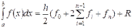 Формула трапеций Обозначим значение функции f (х) в точках xi: fi = f (хi), i =