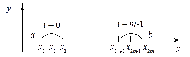 Разобьем интервал [ a, b ] на четное число частичных интервалов 2 m, где 2 m = (b – a)/ h.