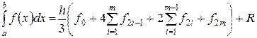 Формула Симпсона. Обозначим значение функции f(х) в точках xi : fi = f(хi), i =