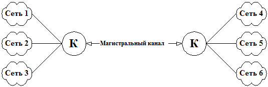 Рис. 9.8 Схема подключения локальных сетей к коммутаторам В перечень функций, выполняемых коммутатором локальной сети, входят: - обеспечение сквозной коммутации; - наличие средств маршрутизации; - поддержка простого протокола управления сетью; - имитация моста либо маршрутизатора; - организация виртуальных сетей; - скоростная ретрансляция блоков данных. Маршрутизатор (router) – ретрансляционная система, соединяющая две коммуникационные сети либо их части. Каждый маршрутизатор реализует протоколы физического (1А, 1B), канального (2А, 2B) и сетевого (3A, 3B) уровней, как показано на рис.9.9. Специальные сетевые процессы соединяют части коммутатора в единое целое. Физический, канальный и сетевой протоколы в разных сетях различны. Поэтому соединение пар коммуникационных сетей осуществляется через маршрутизаторы, которые осуществляют необходимое преобразование указанных протоколов. Сетевые процессы выполняют взаимодействие соединяемых сетей. Маршрутизатор работает с несколькими каналами, направляя в какой-нибудь из них очередной блок данных. Маршрутизаторы обмениваются информацией об изменениях структуры сетей, трафике и их состоянии. Благодаря этому, выбирается оптимальный маршрут следования блока данных в разных сетях от абонентской системы-отправителя к системе-получателю. Маршрутизаторы обеспечивают также соединение административно независимых коммуникационных сетей.