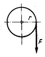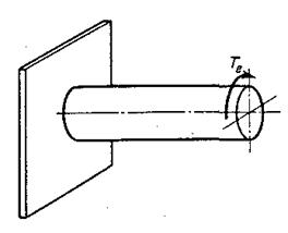 Однако и поперечная нагрузка, смещенная относительно оси стержня, вызывает крутящие моменты (рис. 13.2), но в указанном случае в поперечных сечениях наряду с крутящими моментами возникают и другие внутренние усилия – поперечные силы и изгибающие моменты. Вместо аксонометрического изображения будем применять главным образом плоское, как более простое. Внешние скручивающие моменты и внутренние крутящие моменты будем изображать в виде линии с двумя кружочками. В одном из них будем ставить точку, обозначающую начало стрелки (на нас), а в другом – крестик, обозначающий конец стрелки, направленный от нас (рис. 13.3).