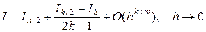Это наиболее популярное практическое правило, разработанное в предположении, что f (x) Î C 4[ a, b ] для квадратурных формул прямоугольников и трапеций, f (x) Î C 6[ a, b ] – для формулы Симпсона. В этом случае можно показать, что погрешности R (h, f) имеют следующие представления при h ® 0: