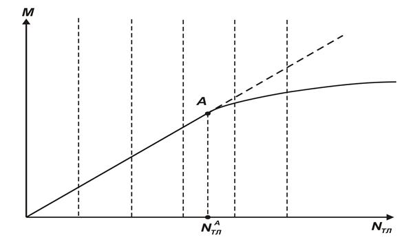 для участка {0 – А} – Mгр = Pл * Nтл ; для участка {А – Nmax} – Mгр = Pл * Nтл (1 – Ксрсн),
