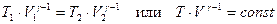 Проинтегрируем последнее выражение для пределов изменения переменных от T 1 до T 2 и от V 1 до V 2 и введя обозначение а используя Т = p·V/(ν·R), получаем Соотношения (36-37) носят название уравнений Пуассона или адиабаты. γ – показатель адиабаты.