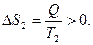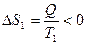 Величина Qi /Ti называется приведенной теплотой. Обозначим ее Δ Si. Из (40) следует, что сумма приведенных теплот при циклическом процессе равна нулю. Это означает, что, какой бы циклический процесс мы ни совершали, если мы вернулись в исходное состояние, некоторая величина S не меняется ( Δ S = 0). Следовательно, S – функция состояния. Она получила название энтропии. Таким образом, состояние определяется не только внутренней энергией U, но и энтропией S. Если процесс не циклический и тело переходит из состояния 1 в другое состояние 2, то Рассмотрим теплопередачу при контакте двух тел при температурах Т1 и Т2 (Т1 > Т2) в теплоизолированной системе. Теплота Q, передаваемая телом 1, равна теплоте Q, полученной телом 2. Однако, тело 1 отдает ее при температуре Т1 и В тепловой машине часть теплоты, взятой от нагревателя, преобразуется в работу, а другая часть должна быть передана холодильнику. Нагреватель охлаждается, а холодильник нагревается. С одной стороны, мы знаем, что при этом энтропия возрастает. С другой стороны, к.п.д. такой тепловой машины будет постепенно падать, так как Энтропию можно связать со степенью упорядоченности системы. Увеличение энтропии соответствует увеличению беспорядка. Энтропия – это мера беспорядка. В наших примерах (рис.) система переходила из менее вероятного, упорядоченного, неравновесного состояния в более вероятное, неупорядоченное, равновесное. Вычислим изменение энтропии для идеального газа, исходя из дифференциальных выражений для изменения энтропии и I начала термодинамики: dS=δQ / T; Учитывая, согласно уравнению Клапейрона, что