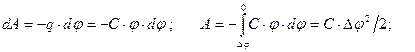 Энергия электрического поля Электрическое поле способно совершать работу над электрическими зарядами, следовательно, оно обладает энергией (потенциальной). Вычисления проведём на примере плоского конденсатора (это удобно, так как всё поле сконденсировано между пластинами). Рассуждаем так: с помощью электрического поля перенесём все заряды с одной пластины на другую и посчитаем совершённую при этом работу. Очевидно, эта работа и будет равна запасённой (потенциальной) энергии поля в конденсаторе, ибо когда мы перенесём последний элементарный заряд, энергия израсходуется полностью, то есть само поле исчезнет. (Изменение потенциала отрицательно, работа сил поля положительна.)