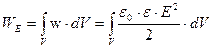 где V=S·d - объём внутри конденсатора (объём, где сосредоточено поле). В самом общем виде энергия электрического поля, заключенная в некотором объеме V, определяется как: