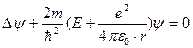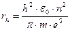 Второй постулат: при переходеэлектронас одной стационарной орбиты на другуюиспускается или поглощается один фотон, энергия которого (в силу закона сохранения энергии) определяется соотношением: h·ν mn= E m – E n, где E m и En — энергии электрона в m -ом и n -ом стационарных состояниях. Стационарными орбитами считаются такие, на которых момент импульса электрона равен целому кратному ħ (условие квантования Бора). Момент импульса частицы массы т, движущейся по окружности радиусом r соскоростью υ, равен L = m·υ·r. Поэтому условие квантования Бора имеет вид: m·υ·rn = n·ħ, где n = 1,2,3,... Целое положительное число n называется квантовым числом орбиты, rn – радиус n -ой стационарной орбиты. Условие квантования можно получить, если считать, что на стационарной орбите укладывается целое число волн де Бройля, соответствующих электрону на этой орбите,: 2π· r n= n · λ Б. Если считать орбиту электрона круговой, то уравнение движения электрона по 2 закону Ньютона: Решая это уравнение совместно с условием квантования находим для радиуса n –стационарной орбиты: Полная энергия электрона в атоме водорода равна сумме его кинетической и потенциальной энергий: Решая это уравнение совместно с условиями квантования орбит и радиусов орбит находим для энергии стационарных состояний:
