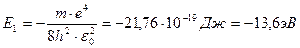 Энергия, равная 13,6 эВ, необходимая для удаления электрона из атома, называется энергией связи, или энергией ионизации Ei. При переходе с m –ой орбиты на n –ую испускается фотон с частотой: