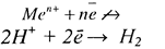Рис. 5.7. При наличии нескольких видов ионов и недиссоциированных молекул возможно протекание нескольких электродных реакций. Реакции, протекающие на катоде. Так как на катоде идут реакции восстановления, т. е. прием электронов окислителем, то в первую очередь будут реагировать наиболее сильные окислители. На катоде прежде всего протекают реакции с наиболее положительным потенциалом. При электролизе водных растворов электролитов все окислители можно разделить на 3 группы: 1. Ионы металлов, потенциал которых более отрицателен, чем потенциал водородного электрода. К ним относятся ионы щелочных и щелочноземельных металлов, то есть группа ионов от Li по Al. В водных растворах разряд этих ионов практически не происходит, т.к. на катоде осуществляется разряд только Н+: -3,04в 0 +1.5в Li_______________ Al _____________________ H2_________Au 1 3 2