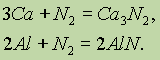 С другими металлами он реагирует лишь при высоких температурах, образуя нитриды. С натрием, кальцием и магнием реакция идет только при нагревании: