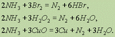 При нагревании аммиака с галогенами, перокcидом водорода, оксидами тяжелых металлов образуется молекулярный азот: