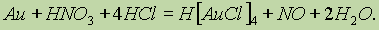 С помощью концентрированной HNO3 можно растворить также и золото. Для этого необходимо взять смесь, состоящую из одного объема концентрированной HNO3 и трех объемов концентрированной соляной кислоты (такую смесь называют царской водкой):