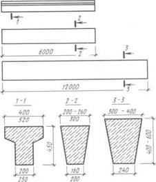 Этот каркас предназначен для восприятия значительных ветровых нагрузок и веса стенового заполнения при значительной его высоте и протяженности. В соответствии с унифицированными габаритными схемами зданий 6ыли разработаны типовые фахверковые колонны для использования их в унифицированных типовых секциях. Для зданий высотой 10,8 и 12,6 м фахверковые колонны приняты из железобетона прямоугольного сечения 400 х 600 мм, выше 12,6 м — из железобетона, с металлическим оголовком; высота колонны переменная и зависит от места установки. Схема фахверковых колонн стен; показаны на рис. 7.6.