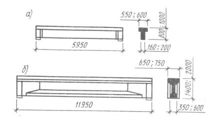 Рис. 7.5. Железобетонные колонны одноэтажных производственных зданий: а) - одноветвевыее прямоугольного сечения - крайние и средние; 6) - то же, сквозные двухветвевые