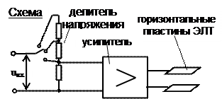 Принцип действия uвх снижается ДН до входного напряжения У и усиливается У до напряжения пластин.