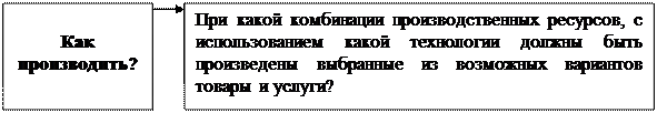 2. Распределение ресурсов при любых обстоятельствах решается посредством выбора. Выбор необходим, ибо всегда возможны многочисленные варианты использования факторов. Эти варианты конкурируют между собой. Следовательно, конкурируют и владельцы этих факторов. Окончательное решение о конкретном использовании фактора – результат выбора. При этом всегда ставятся три фундаментальных вопроса, основанные на выборе: что, как и для кого производить? (рис. 3). Необходимость решения трех перечисленных проблем в любом обществе обусловлена действием закона редкости, противоречием между ограниченностью ресурсов и безграничностью потребностей.