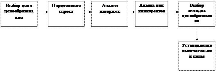 Определение спроса – нельзя устранить или отложить этот важный этап, так как совершенно невозможно рассчитать цену, не изучив спрос на данный товар. Анализ цен конкурентов – существенное влияние на цену оказывает поведение конкурентов и цены на их продукцию. Выбор метода ценообразования. Возможны три направления установления уровня цены: