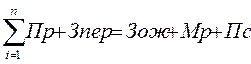 где Пр - потребность в данном ресурсе для выполнения плана производства, объема i-х работ и т.д.; n - число направлений потребления данного вида ресурса (основное производство, внедрение новой техники, ремонтно-эксплуатационные нужды); Зпер - планируемая величина переходящих запасов на конец планового периода; Зож - ожидаемый остаток материала на начало планового периода; Мр - мобилизация внутренних ресурсов, собственное производство; Пс - объем (размер) поставок материала со стороны.