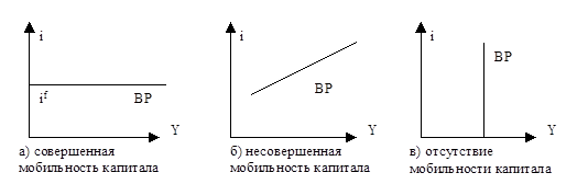 Рис.2. Кривая ВР при разных режимах мобильности финансового капитала Свойства кривой BP: Ø Ø Ø Вопрос: обоснуйте вышеприведенные свойства кривой ВР.