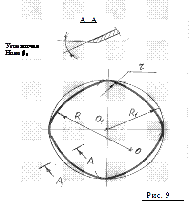 В – с ножом в виде диска с контуром кольцевым и в виде комбинации дуг, рис.9. Такие ножи применяются при работе с низким настилом и при подрезании кромки (осноровке).
