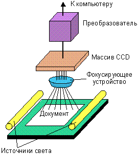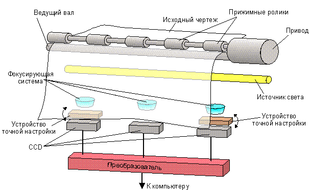 Схема работы проекционного сканера Схема работы рулонного сканера Схема работы планшетного сканера