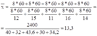 Рассмотрим следующий пример. Бригада токарей была занята обточкой одинаковых деталей в течение 8-часового рабочего дня. Первый токарь затратил на одну деталь 12 мин, второй - 15 мин., третий - 11, четвертый - 16 и пятый - 14 мин. Определите среднее время, необходимое на изготовление одной детали. На первый взгляд кажется, что задача легко решается по формуле средней арифметической простой: