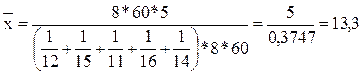 Число деталей, изготовленных каждым рабочим, определяется отношением всего времени работы к среднему времени, затраченному на одну деталь. Тогда среднее время, необходимое для изготовления одной детали, равно: