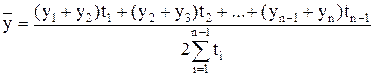 где Для моментного ряда с неравным интервалом средний уровень ряда можно определить по формуле средней скользящей взвешенной: