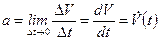 Мгновенное ускорение частицы равно первой производной её скорости V (t) по времени. Так как скорость является первой производной координаты по времени