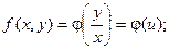 Рассмотрим однородное уравнение Т.к. функция f(x, y) – однородная нулевого измерения, то можно записать: