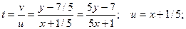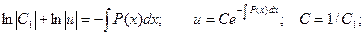 Таким образом, можно одну из составляющих произведение функций выбрать так, что выражение Таким образом, возможно получить функцию u, проинтегрировав, полученное соотношение как однородное дифференциальное уравнение по описанной выше схеме: