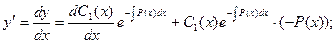 Дифференцируя, получаем: Для нахождения функции С(х) подставляем полученное значение в исходное дифференциальное уравнение: