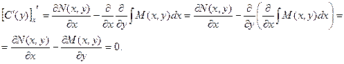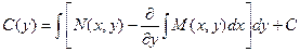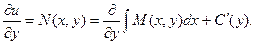 Откуда получаем: Для нахождения функции С(у) необходимо проинтегрировать приведенное выше равенство. Однако, перед интегрированием надо доказать, что функция С(у) не зависит от х. Это условие будет выполнено, если производная этой функции по х равна нулю.