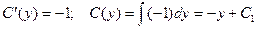 Вследствие интегрирования получаем не постоянную величину С, а некоторую функцию С(у), т.к. при интегрировании переменная у полагается постоянным параметром. Определим функцию С(у). Продифференцируем полученное равенство по у.