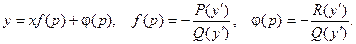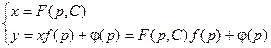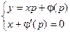 Видно, что общий интеграл уравнения Клеро представляет собой семейство прямых линий. Во втором случае решение в параметрической форме выражается системой уравнений: