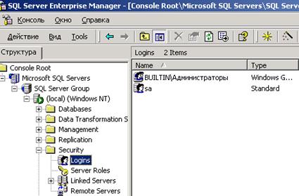 Создание пользователей через утилиту SQL Server Enterprise MANAGER