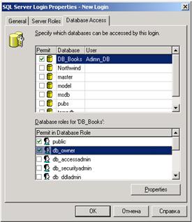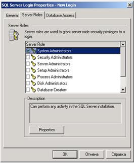 Настроить серверную роль как на рисунке ниже и роль в БД.