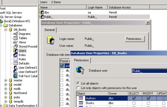 Если пользователей с ролью Public к этой таблице должно подключиться много, то лучше добавить разрешения (permissions) самой роли Public. GRANT SELECT, INSERT ON Authors TO Public (2)