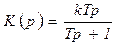 Из уравнения (2.10) видно, что при Т→0, но при конечном kТ оно переходит в уравнение, аналогичное уравнению идеального дифференцирующего звена, и подходит к нему тем больше, чем меньше Т. Но тогда при малом значении постоянной времени звена необходимо увеличивать значение k. Это обычно приводит к необходимости ставить дополнительный безынерционный усилитель, особенно если требуется производить дифференцирование достаточно точно. Примеры конструктивного выполнения реальных дифференцирующих звеньев это обычно пассивные четырехполюсники, содержащие RС (реже RL и RLM) в электрических цепях, успокоитель с пружиной в механических цепях и другие устройства. Сообразно с уравнением (2.10) передаточная функция реального дифференцирующего звена может быть записана так