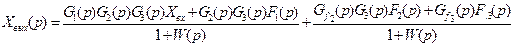 где Полученный результат можно обобщить в виде следующего правила: операторное изображение выходной величины системы равняется дроби, числитель которой есть произведение изображения внешнего воздействия на передаточные функции звеньев, включенных последовательно между точкой приложения воздействия и выходом системы, а знаменатель - увеличенная на единицу передаточная функция разомкнутой системы. Аналогичным путем получим выражения и для остальных внешних воздействий