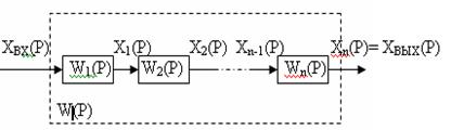 Рассмотрим основные случаи включения звеньев направленного действия. Последовательное включение (одноконтурная разомкнутая система). Структурная схема приведена на рисунке 4.1.