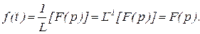 Здесь при вычислении интеграла предполагается, что вещественная часть р положительна (σ>0). При σ≤0 интеграл не существует, но преобразованная функция от единицы всегда равняется 1/р. Может случиться, что интеграл (5.1) не существует ни при каких значениях р. В этом случае преобразование (5.2) невозможно. Однако в физических задачах, описываемых дифференциальными уравнениями в полных производных с постоянными коэффициентами, и при обычном типе возмущающих воздействий это преобразование всегда осуществимо. Наряду с прямым преобразованием (5.1) функции времени ƒ (t) в F(р), т. е. наряду с операцией перехода от функции вещественного переменного t к функции комплексного переменного р, пользуются обратным преобразованием, т. е. преобразованием изображения в оригинал. При этом производится обратная операция определения оригинала ƒ (t) по заданному изображению F(р). Эта операция обозначается символом L-1 или 1/L. Таким образом, в этом случае имеем