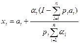 Эту функцию легко интерпретировать. Вначале приобретается минимально необходимое количество каждого блага ai. Затем рассчитывается сумма денег, оставшаяся после этого, которая распределяется пропорционально «весам» важности αi. Разделив количество денег на сумму рi, получаем дополнительно приобретаемое, сверх минимума, количество i – го блага и добавляем его к аi. Модель Стоуна имеет различные частные случаи: Когда все аi = 0, а все αi равны между собой, получаем