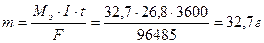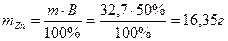 Суммарное уравнение: Zn + 2H2O = H2 + Zn2+ + 2OH- или в молекулярной форме Zn + 2H2O = H2 + Zn(OH)2 Пример 6. Определите массу цинка, которая выделится на катоде при электролизе раствора сульфата цинка в течение 1 часа при токе 26,8А, если выход цинка по току равен 50%. Решение. В соответствии с законом Фарадея определим массу цинка, который выделился бы, если бы на катоде протекал один процесс: