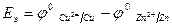 Рассмотрим сначала состояние этого элемента при разомкнутой внешней цепи – режим «холостого хода». На электродах в результате процесса обмена устанавливаются следующие равновесия, которым в стандартных условиях соответствуют стандартные электродные потенциалы: Zn2+ + 2e- D Zn Cu2+ + 2e- D Cu Потенциал цинкового электрода имеет более отрицательное значение, чем потенциал медного электрода, поэтому при замыкании внешней цепи, т.е. при соединении цинка с медью металлическим проводником, электроны будут переходить от цинка к меди. В результате перехода электронов от цинка к меди равновесие на цинковом электроде сместится влево, поэтому в раствор перейдёт дополнительное количество ионов цинка (растворение цинка на цинковом электроде). В то же время равновесие на медном электроде сместится вправо и произойдёт разряд ионов меди (выделение меди на медном электроде). Данные самопроизвольные процессы будут продолжаться до тех пор, пока не выровняются потенциалы электродов или не растворится весь цинк (или вся медь не осадится на медном электроде). Итак, при работе элемента Даниэля – Якоби протекают следующие процессы: 1) движение электронов во внешней цепи от цинкового электрода к медному, т.к. 2) реакция окисления цинка: Zn – 2e- = Zn2+. Процессы окисления в электрохимии получили название анодных процессов, а электроды, на которых идут процессы окисления, называют анодами; следовательно, цинковый электрод – анод; 3) реакция восстановления ионов меди: Сu2+ + 2е = Сu. Процессы восстановления в электрохимии получили название катодных процессов, а электроды, на которых идут процессы восстановления, называют катодами; следовательно, медный электрод – катод; 4) движение ионов в растворе: анионов (SO42-) к аноду, катионов (Cu2+,Zn2+) к катоду, замыкает электрическую цепь гальванического элемента; 5) cуммируя электродные реакции, получаем: Zn + Cu2+ = Cu + Zn2+ или в молекулярном виде: Zn + CuSO4 = Cu + ZnSO4. Вследствие этой химической реакции в гальваническом элементе возникает движение электронов во внешней цепи ионов внутри элемента, т.е. электрический ток, поэтому суммарная химическая реакция, протекающая в гальваническом элементе, называется токообразующей. При схематической записи, заменяющей рисунок гальванического элемента, границу раздела между проводником 1-го рода и проводником 2-го рода обозначают одной вертикальной чертой, а границу раздела между проводниками 2-го рода – двумя чертами. Анод – источник электронов, поступающих во внешнюю цепь – принято считать отрицательным, катод – положительным. Анод помещается в схеме слева. Схема ГЭ Даниэля – Якоби, например, записывается в виде: (-) Zn |ZnSO4| |CuSO4| Cu (+) или в ионно-молекулярном виде: (-) Zn |Zn2+ ||Cu2+| Cu (+). Причиной возникновения и протекания электрического тока в гальваническом элементе является разность окислительно-восстановитель-ных потенциалов (электродных потенциалов 1 ) частных реакций, определяющих электродвижущую силу Еэ гальванического элемента, и в рассматриваемом случае: