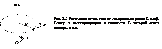 Таким образом, мы нашли связь между модулями линейной и угловой скоростей: v=wR (2.6) Будем определять положение точек тела с помощью радиус-вектора r, проведенного из точки О, лежащей на оси вращения. На рис. 2.2 видно, что R=r sinb. Подстановка этого значения в (2.6) дает v=wrsinb Это равенство и показанные на рис. 2.2 взаимные направления векторов w, r, и v дают основание представить v в виде векторного произведения w на r: