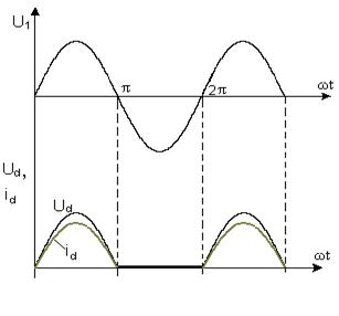 Недостатки однополупериодной схемы выпрямления: токи и напряжения прерывисты, следовательно, низкое среднее значение токов и напряжений. Кроме того, в схеме велик уровень напряжения пульсаций.