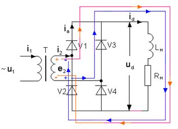 ![]() §5 Однофазная двухполупериодная мостовая схема выпрямления